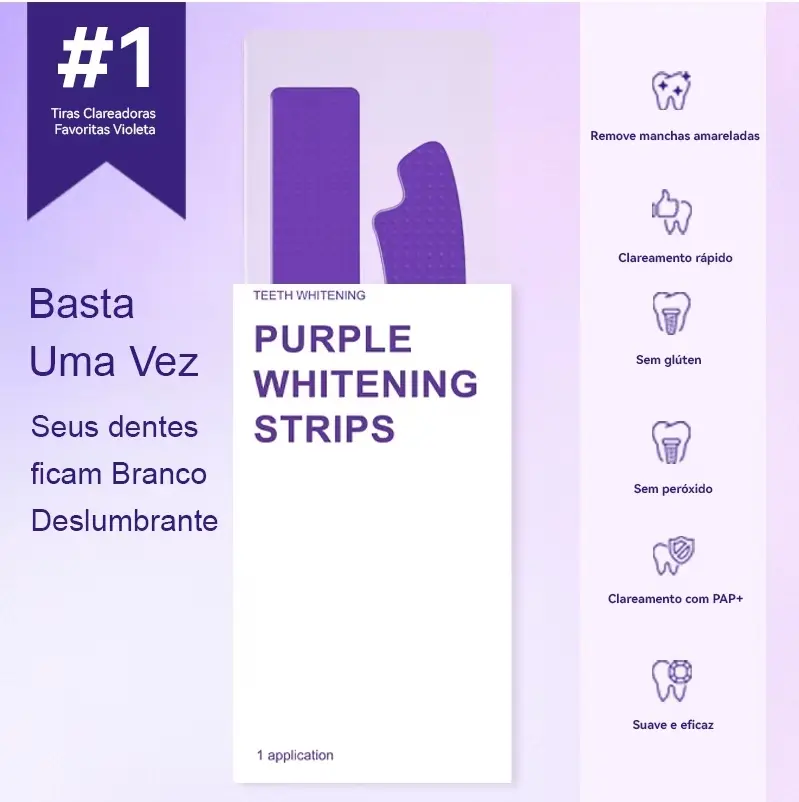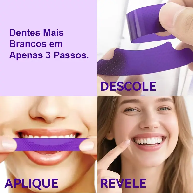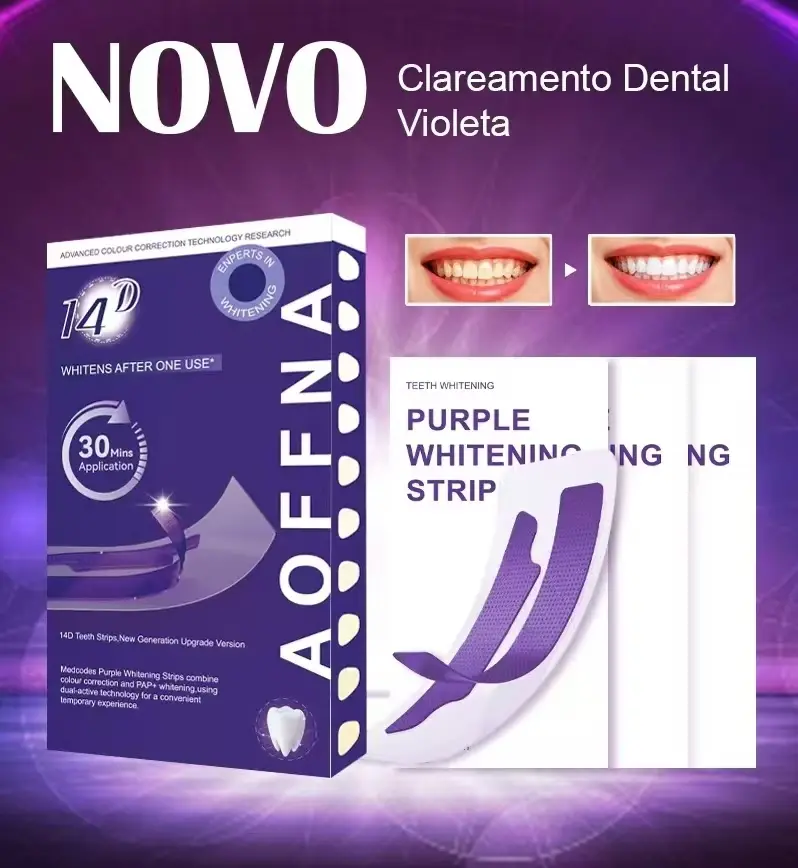 ✨ Fitas Adesivas 14D Roxo ✨ - Fitas adesivas 14D roxo para dentes BrilhoWhite 7 pares. Perfeito para tratamento de clareamento dental profundo.